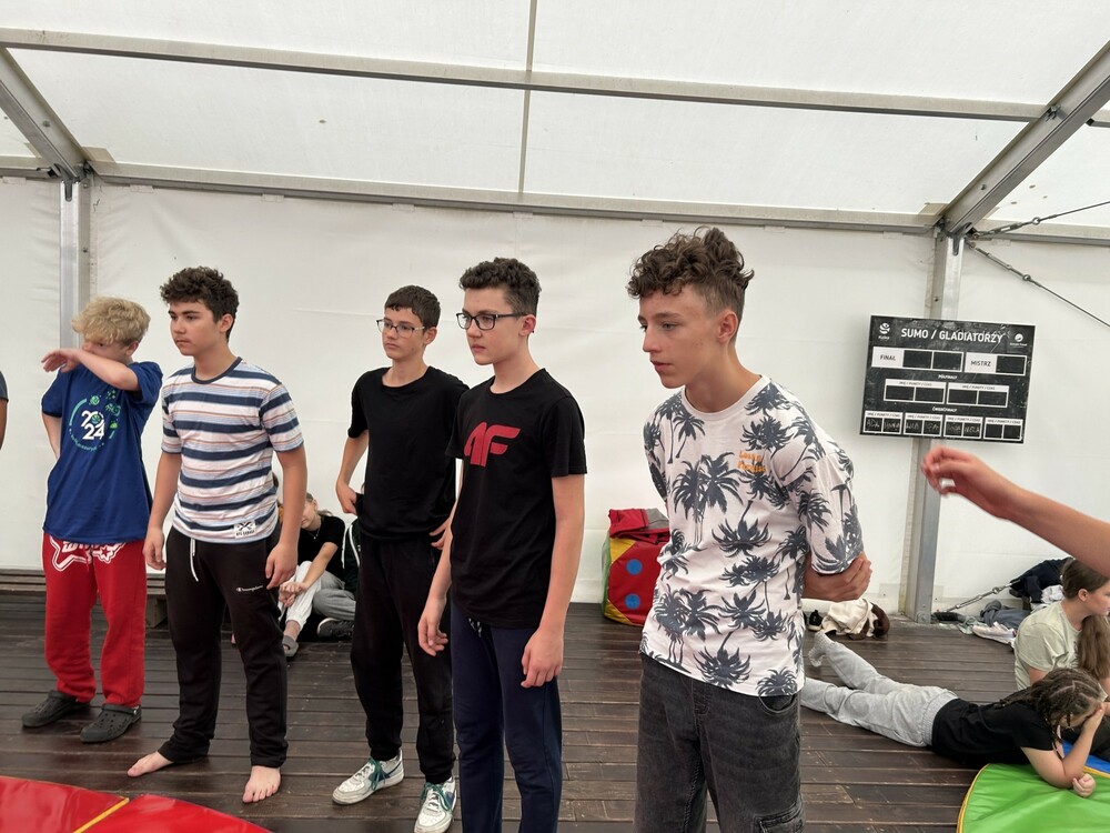 Czwartek rozpoczęliśmy od zajęć, na których poznaliśmy budowę i obsługę quadu. Następnie wykorzystując poznane informacje jeździliśmy na quadzie po specjalnie przygotowanym do tego torze. To była świetna zabawa. Dzisiaj strzelaliśmy również z łuków, ćwicząc celność i postawę strzelecką. Na zajęciach o nazwie Błędny Azymut wykazaliśmy się umiejętnościami posługiwania się kompasem i orientacji w terenie. Stoczyliśmy walki niczym prawdziwi gladiatorzy w rzymskim Koloseum wyposażeni w specjalne lance. Na koniec dnia poszliśmy na dyskotekę, podczas której wytańczyliśmy się za wszystkie czasy.