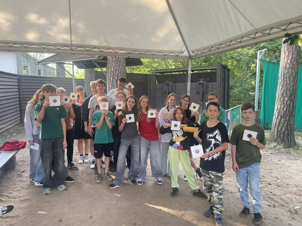 Naszą pierwszą atrakcją było dzisiaj układanie wysokich wież ze skrzynek, a następnie wchodzenie na nie w bezpiecznej uprzęży. Poznaliśmy również budowę łuku i strzały oraz prawidłową postawę strzelecką, a następnie wzięliśmy udział w konkursie strzeleckim. Następnie przyszedł czas na doskonalenie naszych umiejętności strzeleckich z wiatrówką sprężynową. Po intensywnym poranku udaliśmy się na odpoczynek nad jezioro na plażę, gdzie zażyliśmy kąpieli i złapaliśmy trochę słońca. Dzień zakończyliśmy świetną zabawą na dyskotece.