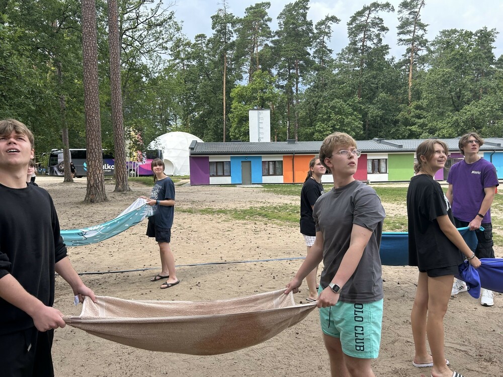 Dziś rano spędziliśmy czas na podobozie grając w ziemniaka. Następnie wybraliśmy się na plażowanie. Graliśmy również w baloniadę na boisku do siatkówki. Po obiedzie wzięliśmy udział w dynamicznej strzelnicy paintballowej. Odbyły się również kolejne zajęcia survivalowe, podczas których uczyliśmy się układać stosy ogniskowe oraz jak posługiwać się krzesiwem i filtrować wodę. Na koniec dnia odbyła się pierwsza na tym turnusie dyskoteka.