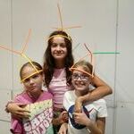 W czwartek rano Apollo był z nas bardzo dumny, ponieważ rozpoczęliśmy dzień artystycznie od pisania naszego herosowego hymnu. Potem doskonaliliśmy go na plaży korzystając z uroków Mazur i kąpiąc się w jeziorze. Przed obiadem natchnienie nas nie opuszczało, więc tworzyliśmy naklejki przedstawiające naszych boskich rodziców. Następnie razem z naszą patronką Artemidą udaliśmy się na zawody łucznicze. Jak na prawdziwe łowczynie przystało, poradziłyśmy sobie świetnie. Przed kolacją odwiedziła nas muza tańca Terpsychora. Doskonaliliśmy wspólnie nasze umiejętności taneczne, a na koniec sprawdziliśmy się w tanecznej bitwie. To były idealne zajęcia przed wieczorną dyskoteką, bo dzięki treningowi parkiet był nasz.