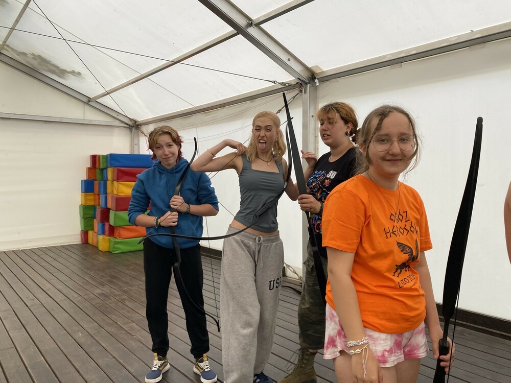 Nasz dzień rozpoczęłyśmy wspinaczką na ściance z czterema różnymi poziomami. Następnie mogłyśmy się poczuć jak prawdziwe heroski podczas nauki władania mieczem, odbył się nawet turniej. Po południu odbyły się też przegląd hymnów naszego obozu. Później sprawdzaliśmy swoją celność i bystre oko podczas strzelania z łuków. Wieczorem zmierzyłyśmy się z Kulkową Akademią Wiedzy, w czasie której dowiedziałyśmy się wielu ciekawych rzeczy.