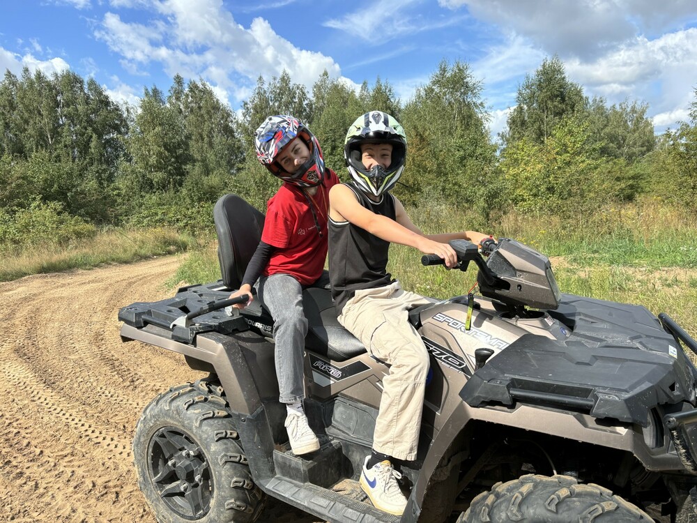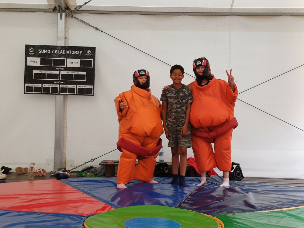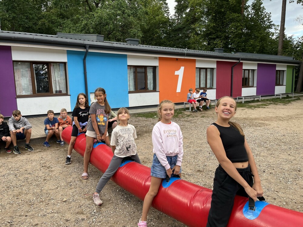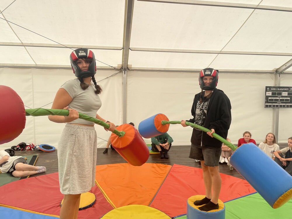 Dzień rozpoczął się od wyprawy na poligon, gdzie czekały nas niezwykłe atrakcje. Najpierw poruszaliśmy się wewnątrz ogromnej, dmuchanej kuli, pokonując nierówności terenu. Potem przyszedł czas na jazdę quadem w specjalnie przygotowanej strefie, pełnej przeszkód. Nie zabrakło też przejażdżki rangerem. Popołudnie spędziliśmy na plaży nad jeziorem Łęsk, gdzie orzeźwiająca kąpiel była doskonałym uzupełnieniem dnia pełnego wrażeń. Emocje sięgnęły zenitu podczas szalonych skoków na eurobungee, które pozwoliły nam wzbić się w powietrze. Dzień zakończyliśmy grając w różne gry planszowe i karciane, co było idealnym zwieńczeniem tego pełnego przygód dnia.