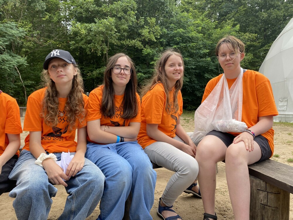 Poranek zaczęliśmy od wyjścia do lasu i nauki o survivalu i jego rodzajach. Nauczyliśmy się też budowania schronienia przy użyciu wojskowej płatki oraz poznaliśmy wyposażenie puszki survivalowej. Korzystając ze słonecznej pogody udaliśmy się na odpoczynek i kąpiele na plaży przy jeziorze Łęsk. Po południu mieliśmy warsztat plastyczny, na którym tworzyliśmy znaczki oraz prace techniką quillingu. Następnie zrobiliśmy plenerowy seans filmowy, na którym obejrzeliśmy ciekawy film. Wieczór spędziliśmy na różnych grach i zabawach, które umocniły więzy przyjaźni w naszej grupie.