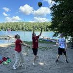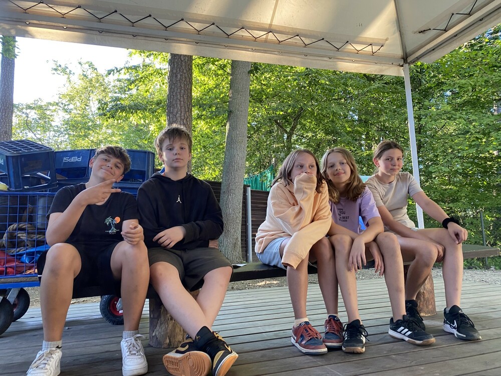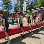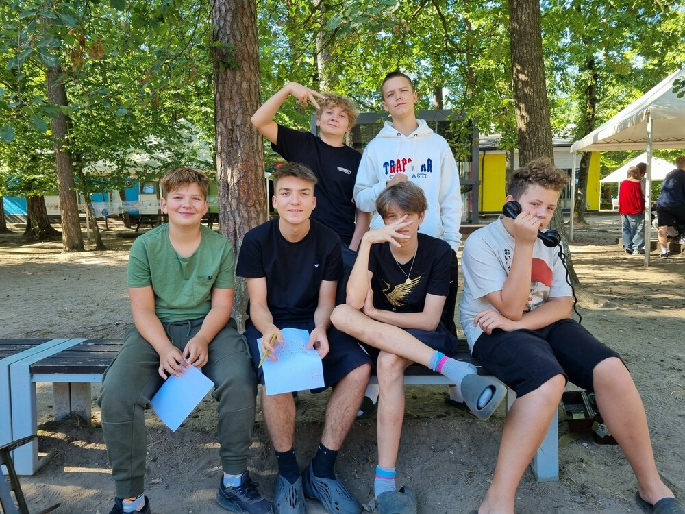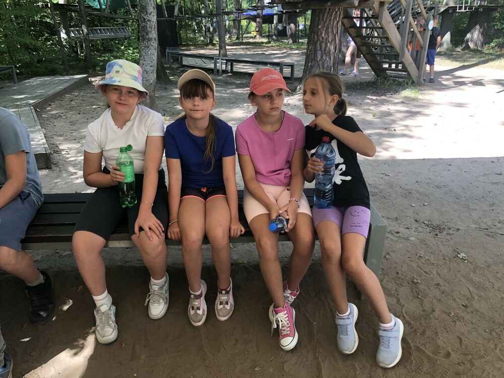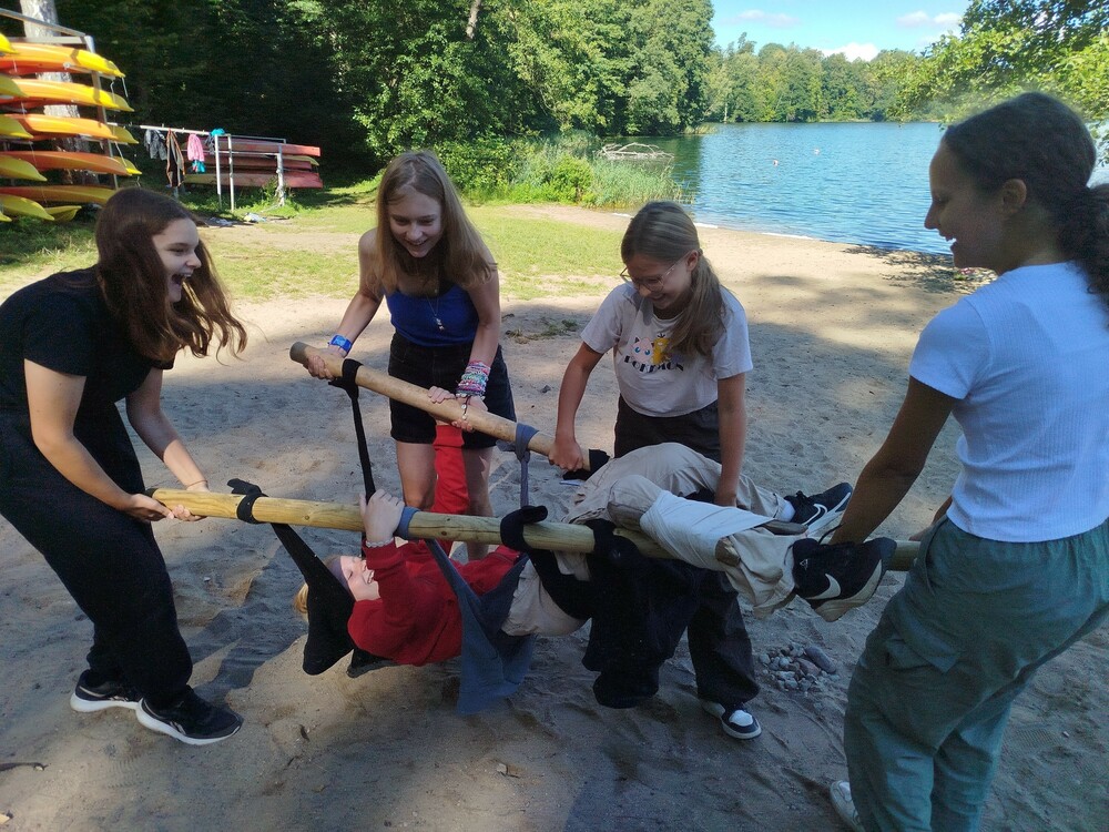 Dzień rozpoczęliśmy od wspólnego spędzania czasu na świeżym powietrzu, po czym udaliśmy się na plażę, na której graliśmy w siatkówkę oraz kąpaliśmy się w jeziorze. Następnie pokonywaliśmy dwie trasy parku linowego. Każdemu z nas udało się przejść najwyższy tor! Jesteśmy z siebie bardzo dumni. Po świetnej zabawie na świeżym powietrzu przyszedł czas na pojedynki gladiatorów, na których było dużo rywalizacji oraz śmiechu. Z niecierpliwością czekamy na jeszcze jeden dzień pełen pozytywnych emocji.