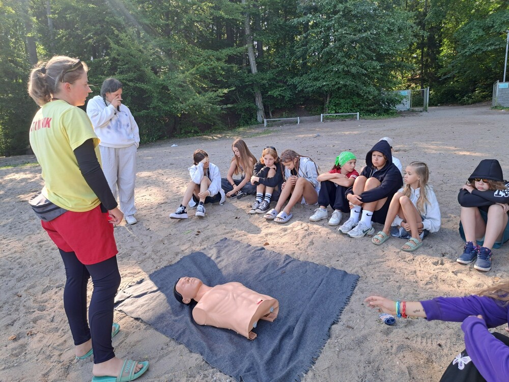 Dzisiaj po śniadaniu zagrałyśmy mecz siatkówki. Korzystając z pogody udałyśmy się na plażę, na której odpoczywałyśmy i czytałyśmy książki. Potem miałyśmy warsztaty teatralne polegające na improwizowanych przedstawieniach, w których wzięłyśmy udział, będąc aktorami. Po obiedzie poznałyśmy podstawowe zagadnienia dotyczące udzielania pierwszej pomocy. Następnie rozwiązywałyśmy różne zagadki, między innymi sudoku. Po kolacji miałyśmy ognisko z książką Riordana.