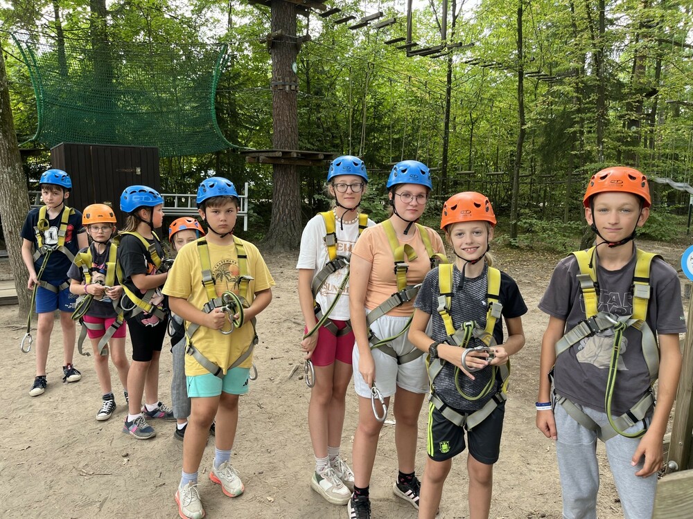 Park linowy na początek dnia to najlepszy pomysł. Przeszliśmy wszyscy nawet najwyższy tor. Dzisiaj obejrzeliśmy kolejną część przygód naszego bohatera, dzięki czemu wiemy jeszcze więcej o jego świecie. Zwiedziliśmy wody naszego jeziora rowerkami wodnymi. Potem podjęliśmy się wyzwania Archery Soft. Poszukiwaliśmy horkruksów korzystając z umiejętności wyznaczania azymutu kompasem. Na koniec dnia próbowaliśmy rozkodować historię zapisaną tajnym magicznym alfabetem.