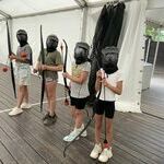 Dziś zaczęliśmy od pływania bezburtowymi jednoosobowymi kajakami. Następnie poznaliśmy budowę łuku, strzały i podstawową postawę strzelecką. Pokonywaliśmy też trasy o różnych poziomach trudności znajdujące się na ośmiometrowej ściance wspinaczkowej. Po obiedzie udaliśmy się na plażowanie, a potem wzięliśmy udział w starciu łuczników. Ten dzień zakończyliśmy ogniskiem, na którym piekliśmy kiełbaski i świetnie się bawiliśmy.