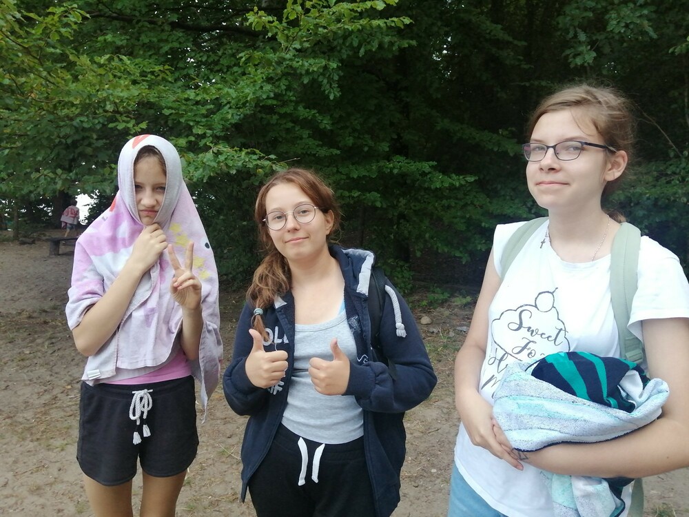 Dzień rozpoczęliśmy od walk sumo. Odbył się turniej o miano najlepszego zawodnika. Walczyliśmy między sobą, aby wyłonić zwycięzcę. Później wybraliśmy się do lasu na spacer, aby przejść leśną ścieżką edukacyjną. Po chwili odpoczynku rozgrzaliśmy się, żeby wziąć udział w dance! dance! dance!, czyli w tanecznych zajęciach. Naśladowaliśmy ruchy instruktora ucząc się układów tanecznych do znanych piosenek. Następnie udaliśmy się na plażę, na której czekała na nas wyprawa rowerami wodnymi. Pływaliśmy po jeziorze Łęsk podziwiając jego uroki. Na zakończenie dnia odbyło się ognisko. Bawiliśmy się w różne gry integracyjne, a później piekliśmy kiełbaski. To był cudowny dzień.