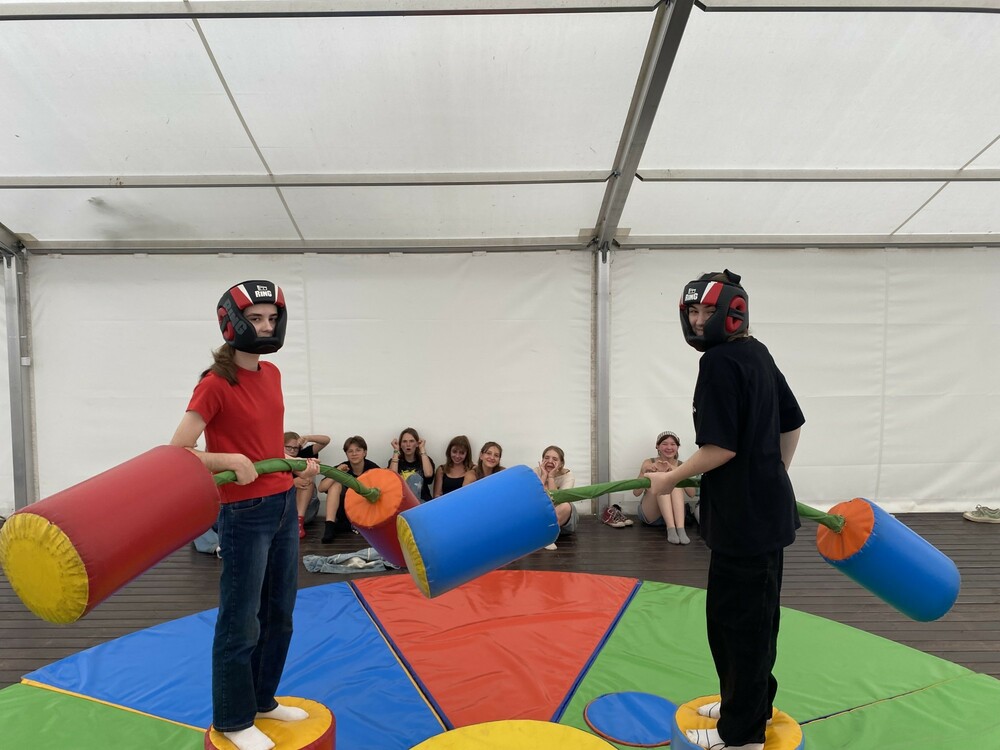 Dzień rozpoczął się walkami gladiatorów, podczas których pojedynkowaliśmy się na specjalnej macie przy użyciu gumowych lancy. Następnie udaliśmy się na zajęcia konstrukcyjne, podczas których budowaliśmy zamek za pomocą różnych elementów. Potem mieliśmy zajęcia z wiatrówkami sprężynowymi, na których uczyliśmy się z nich strzelać oraz poznaliśmy podstawową postawę strzelecką. Wybraliśmy się także na wyprawę kajakami turystycznymi po jeziorze Łęsk. Następnie malowaliśmy w chmurach i puściliśmy wodze naszej fantazji. Na koniec dnia udaliśmy się na sumo, na którym w specjalnych strojach i na kolorowej macie rywalizowaliśmy między sobą.