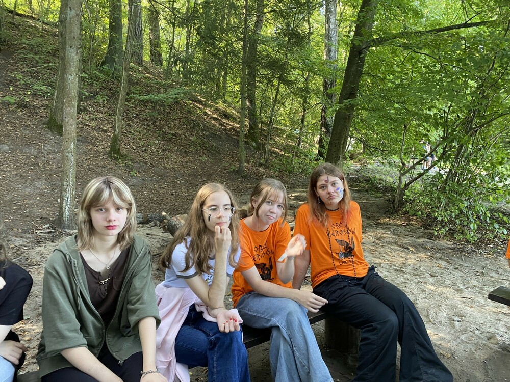 Dzień zaczęliśmy od malowania w chmurach, czyli na folii rozwieszonej między drzewami oraz szykowaliśmy banery na apel końcowy. Później graliśmy w wersje XXL popularnych gier jak twister i bierki. Przed obiadem udaliśmy się na żyroskop, na którym mieliśmy wrażenia nie z tej ziemi. Po obiedzie pływaliśmy kajakami i wspinaliśmy się na ściankę wspinaczkową. Po kolacji czytaliśmy przy ognisku książki Ricka Riordana i śpiewaliśmy piosenki.