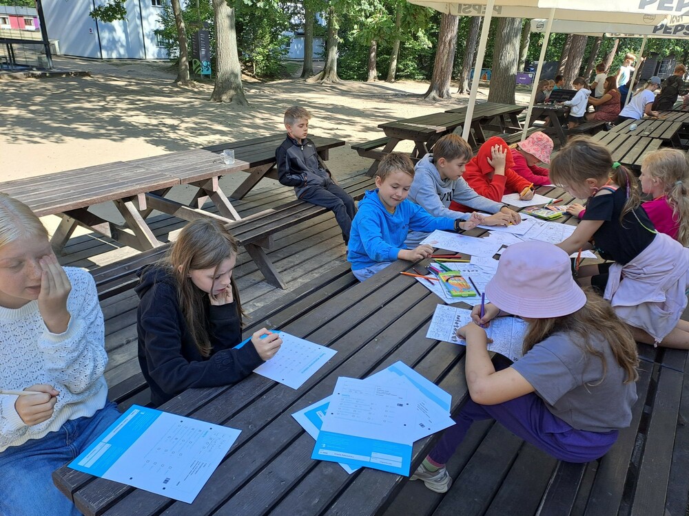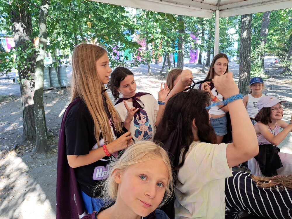 Dzisiaj od rana rysowaliśmy, a potem udaliśmy się na plażę, by kąpać się i relaksować na piasku. Po południu tworzyliśmy swoje własne bransoletki z linki. Następnie braliśmy udział w podchodach w pobliskim lesie.