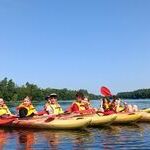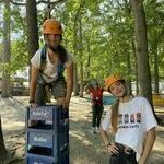 Nasza kulkową przygodę zaczęliśmy od parku linowego, na którym mogliśmy przejść dwa poziomy trudności. Następnie poszliśmy na rejs jednoosobowymi kajakami, którymi mieliśmy okazję przepłynąć na drugi koniec jeziora. Po powrocie opalaliśmy się na plaży oraz pływaliśmy, a po południu oglądaliśmy film w kinie 3D. Nasz dzień zakończyliśmy imprezą na Poziomie X.