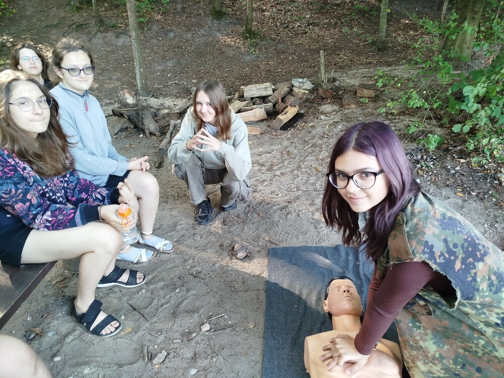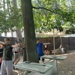 Słoneczny dzień zaczęliśmy od rejsu smoczą łodzią. Następnie uczyliśmy się posługiwać wiatrówkami, a potem rywalizowaliśmy ze sobą w turnieju. Korzystając z pięknej pogody odwiedziliśmy również plażę. Po obiedzie wybraliśmy się do lasu, aby poznać podstaw survivalu. Dowiedzieliśmy się, jak budować schronienie przy pomocy wojskowej pałatki. Dzień skończyliśmy wspólnie się bawiąc.