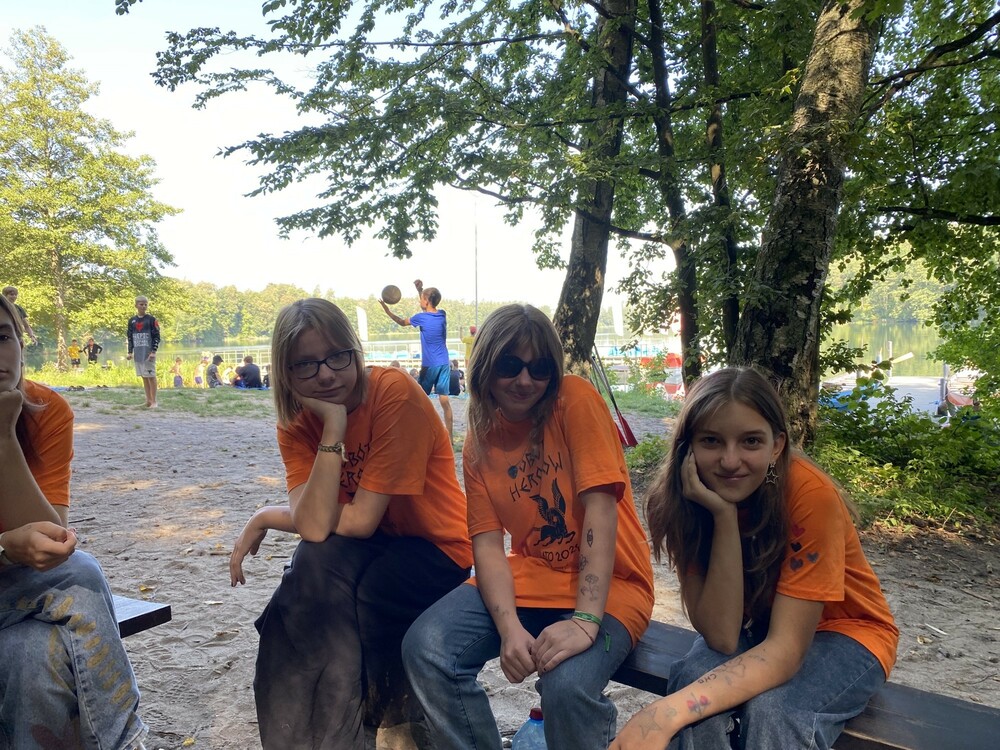 Dziś rano graliśmy w kalambury. Następnie udaliśmy się na plażę, aby wypocząć w promieniach słońca i schłodzić się w jeziorze. Potem pływaliśmy po jeziorze smoczą łodzią, następnie graliśmy w podchody oraz berka. Wieczorem udaliśmy się na seans filmowy do gwiezdnego kina.