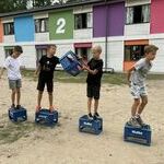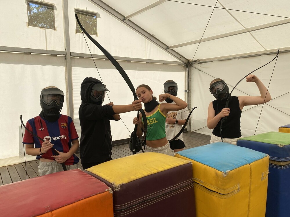Po śniadaniu spędzaliśmy wspólnie czas grając i bawiąc się w zabawy integracyjne. Następnie, korzystając z pięknej pogody, poszliśmy na plażę - pływaliśmy w jeziorze oraz relaksowaliśmy się leżąc na kocach. Następnie ćwiczyliśmy naszą celność strzelając z łuku. Potem otrzymaliśmy certyfikaty i przypinki, aby mieć pamiątki z naszej kolonii. Kolejnymi zajęciami był Ale Cyrk! Mogliśmy poczuć się jak prawdziwi akrobaci jeżdżąc na nietypowym rowerze oraz chodząc na szczudłach. Na koniec dnia integrowaliśmy się wspólnie spędzając ze sobą czas w czasie różnych zabaw.