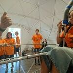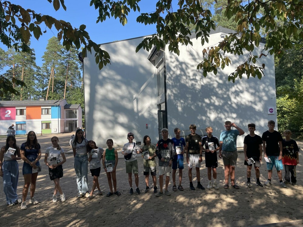 Dziś zaczęliśmy od seansu w kinie sferycznym, podczas którego obejrzeliśmy film o kosmosie. Kolejne zajęcia odbyły się w podobnym klimacie, ponieważ poszliśmy na żyroskop. Tam mogliśmy przejść ćwiczenia podobne do tych, które przed wylotem w kosmos mają astronauci. Korzystając z dobrej pogody wybraliśmy się też na plażę. Po obiedzie kończyliśmy flagę naszej grupy, a następnie wybraliśmy się ponownie na przejażdżkę quadem. Na koniec dnia czekała nas najważniejsza i wyczekana atrakcja na obozu, czyli gra terenowa Nocny Desant.