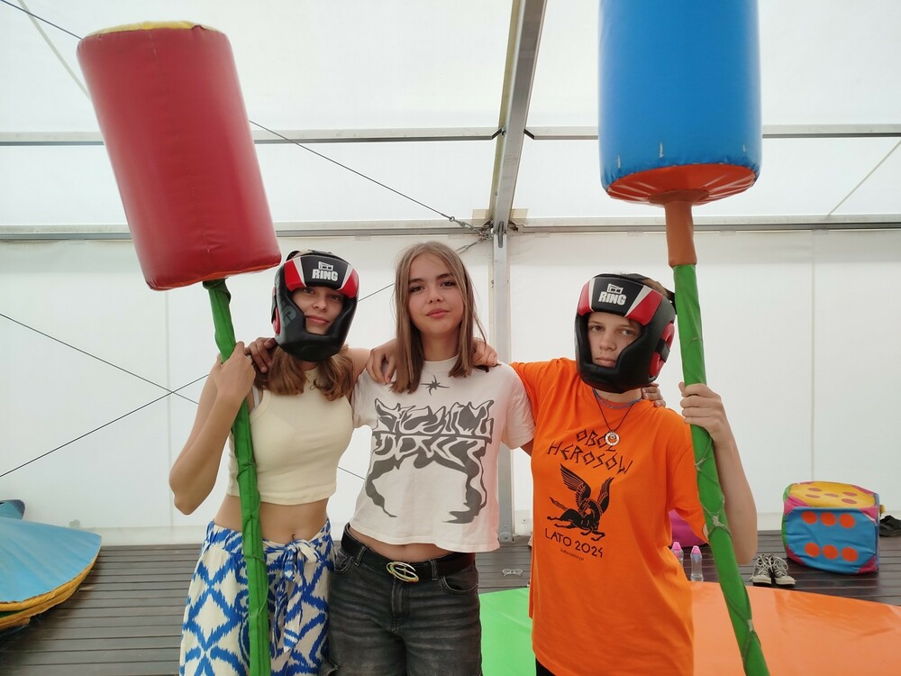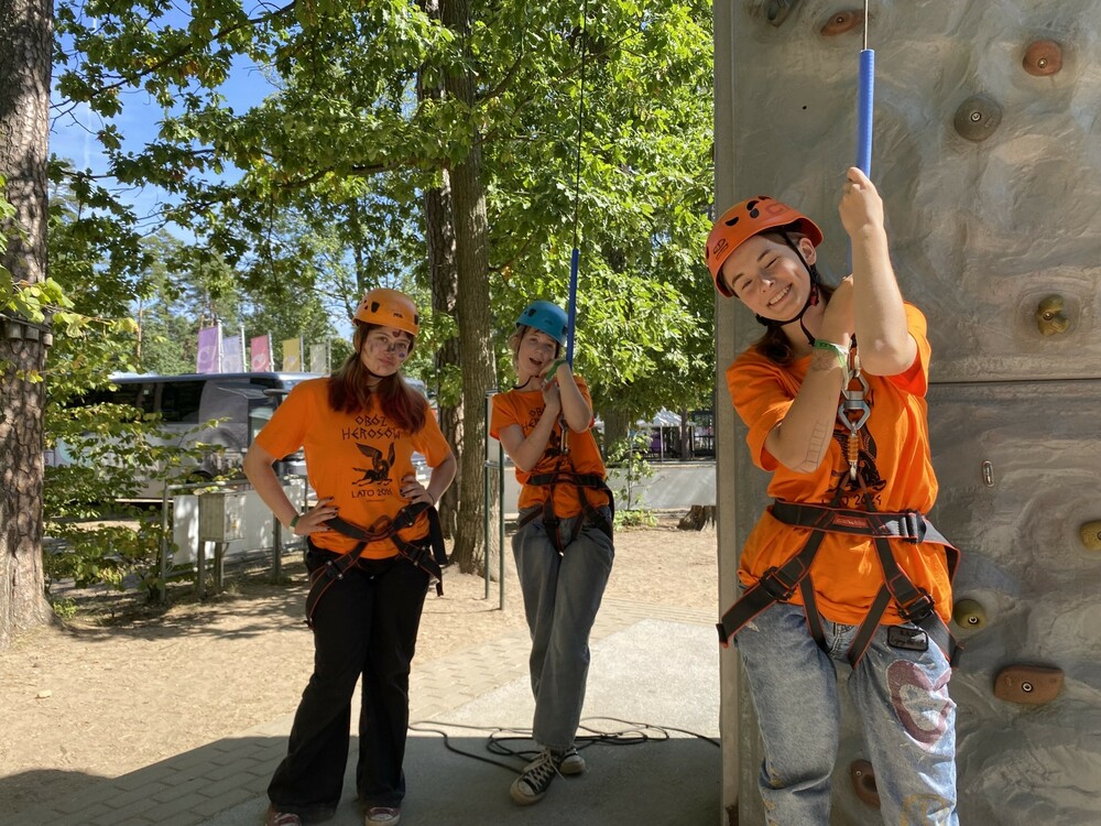 Dzień rozpoczęliśmy od robienia bransoletek z linki. Każdy mógł stworzyć własnoręcznie unikalną ozdobę. Następnie wspinaliśmy się na ściankę, wybierając trasę spośród czterech poziomów trudności. Sprawdziliśmy swoje umiejętności. Świetnie nam poszło. Po tym wysiłku zrelaksowaliśmy się na plaży, ciesząc się słońcem i odpoczynkiem. Po przerwie wróciliśmy do rywalizacji podczas walk gladiatorów. Walczyliśmy wielkimi lancami. To były emocjonujące starcia. Dzień zakończyliśmy meczem siatkówki, grając wspólnie i czerpiąc radość z ruchu i zabawy.