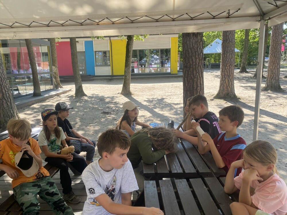 Dzień rozpoczęliśmy od wyjścia na plażę, na której odpoczywaliśmy na kocach, budowaliśmy zamki z piasku oraz kąpaliśmy się w jeziorze. Następnie udaliśmy się na leśną ścieżkę edukacyjną. Podczas tej wyprawy dowiedzieliśmy się wielu interesujących rzeczy dotyczących lasu. Poszliśmy także na eurobungee, na którym ubrani w specjalne uprzęże mogliśmy skakać bardzo wysoko. Potem zagraliśmy w fabularyzowaną grę Szpieg z Plutona, podczas której każdy miał przydzieloną rolę. Na koniec dnia udaliśmy się do sferycznego kina, w którym obejrzeliśmy niesamowity trójwymiarowy film.